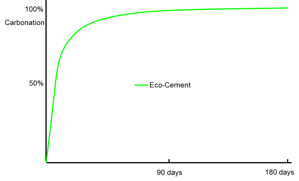 The more magnesia added to Eco-Cement and the more permeable it is, the more CO2 that is absorbed. The rate of absorption of CO2 varies with the degree of permeability. Carbonation occurs quickly at first and more slowly towards completion. A typical Eco-Cement concrete block would be expected to fully carbonate within a year. Eco-Cement also has the ability to be almost fully recycled back into cement, should the concrete structure become obsolete. .